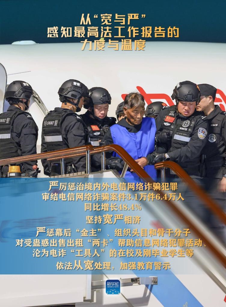 新華社北京3月9日電(記者高潔、馬知遙、袁秋岳)3月8日,最高人民法院工作報告提請十四屆全國人大二次會議審議。報告中列舉了不少案例,有的案件從嚴(yán)從重判決,有的從寬或無罪判決。讓我們從“寬與嚴(yán)”感知報告的力度與溫度。