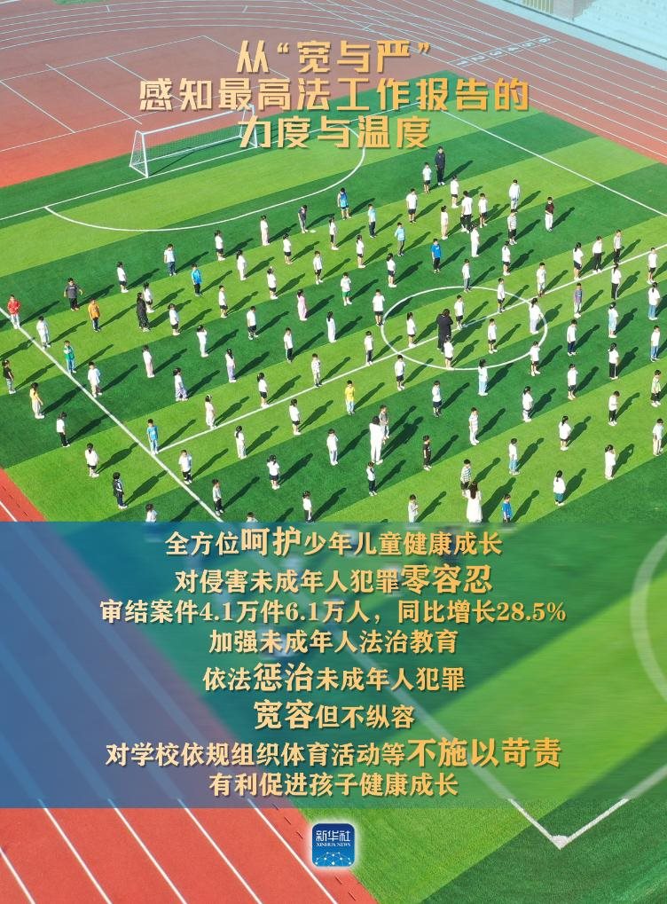 ——全方位呵護少年兒童健康成長。對侵害未成年人犯罪零容忍,審結(jié)案件4.1萬件6.1萬人,同比增長28.5%。