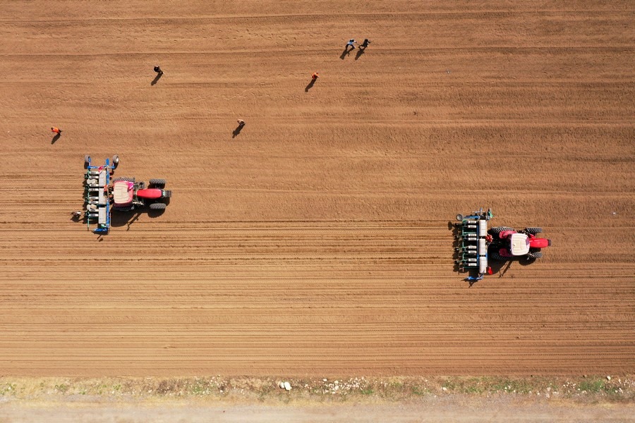 空中俯瞰自動(dòng)導(dǎo)航無人駕駛農(nóng)機(jī)具 北疆新聞?dòng)浾?張楊攝影