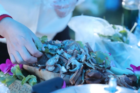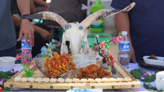 烤全羊、手抓肉、肚包肉……活動現場,參賽選手們各顯神通,用他們精湛的廚藝為大家呈現了一場全羊盛宴。來自不同地區(qū)的36道羊肉系列菜,現場烹飪制作并供嘉賓、游客品嘗,評委從每道菜品的食材、烹飪方法、口味色澤、擺盤設計等方面入手,進行現場打分排名。一道道精心烹飪的美食香飄四座,激發(fā)了現場觀眾的食欲。大家紛紛圍上前來,爭相品嘗。“羊肉還有這么多的做法,真是讓人大開眼界。”“太好吃了,羊肉都很鮮美!”現場游客無一不發(fā)出贊嘆?!?/p>
