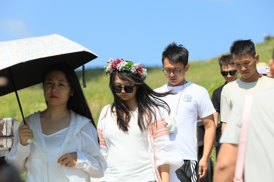 8月2日,游客在烏蘭布統(tǒng)草原游玩