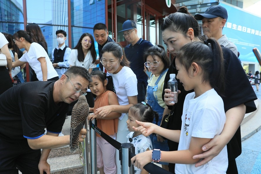 8月2日,呼和浩特。全國生態(tài)日宣傳活動(dòng)現(xiàn)場,野生動(dòng)物零距離互動(dòng),吸引了眾多參觀者圍觀。