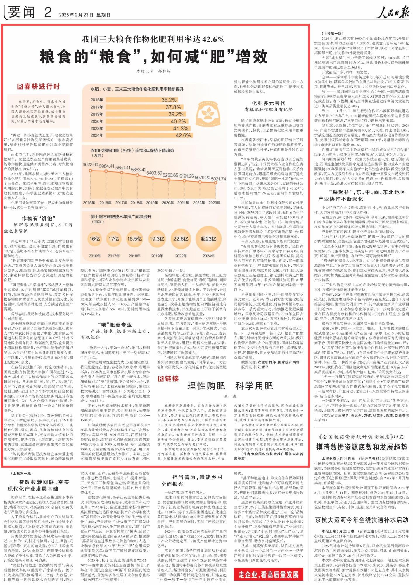2025年2月23日,《人民日報》第2版刊發(fā)題為《糧食的“糧食”,如何減“肥”增效》的文章,其中報道了內(nèi)蒙古“測土配方施肥+種肥同播+膜下滴灌水肥一體化”技術模式。