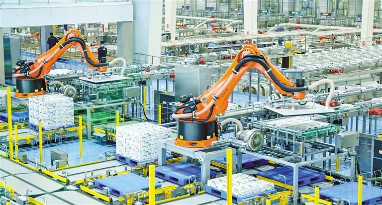 伊利健康谷液態(tài)奶全球智造基地生產(chǎn)線。(供圖:伊利集團)