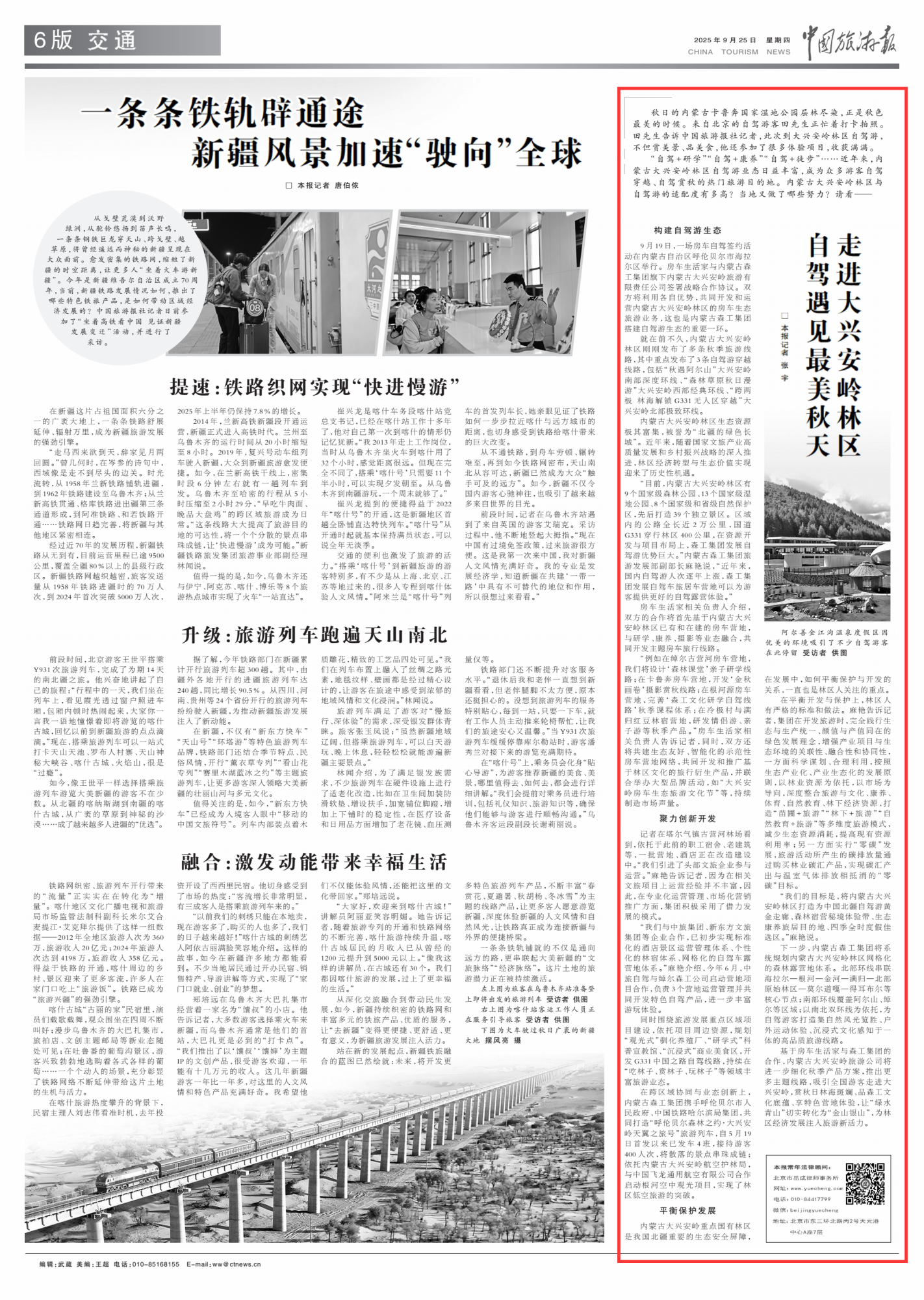 2025年9月25日,《中國旅游報》第6版刊發(fā)題為《走進(jìn)大興安嶺林區(qū) 自駕遇見最美秋天》的文章,報道了“自駕+研學(xué)”“自駕+康養(yǎng)”“自駕+徒步”……內(nèi)蒙古大興安嶺林區(qū)自駕游業(yè)態(tài)日益豐富,成為眾多游客自駕穿越、自駕賞秋的熱門旅游目的地。