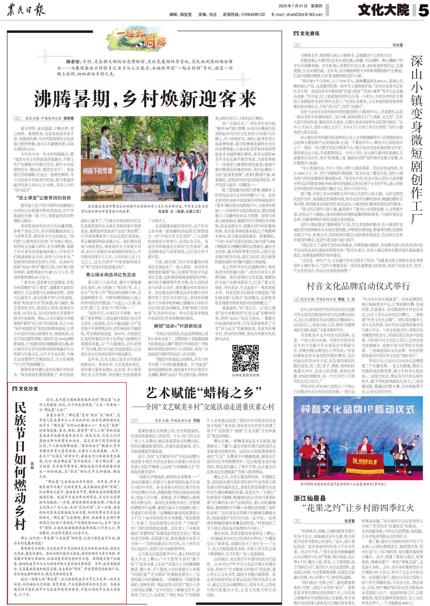 2025年7月31日,《農(nóng)民日報(bào)》第5版刊發(fā)題為《民族節(jié)日如何燃動鄉(xiāng)村》的文章,報(bào)道了近日,在內(nèi)蒙古錫林郭勒盟舉辦的“那達(dá)慕”大會沖上熱搜榜,對此,不少網(wǎng)友熱評道:“人生一定要來一次‘那達(dá)慕’大會!”?!澳沁_(dá)慕”大會的成功并非偶然。近年來,許多少數(shù)民族節(jié)日被廣大網(wǎng)友看見,成為撬動流量的“密碼”,將民族風(fēng)情展現(xiàn)得淋漓盡致。