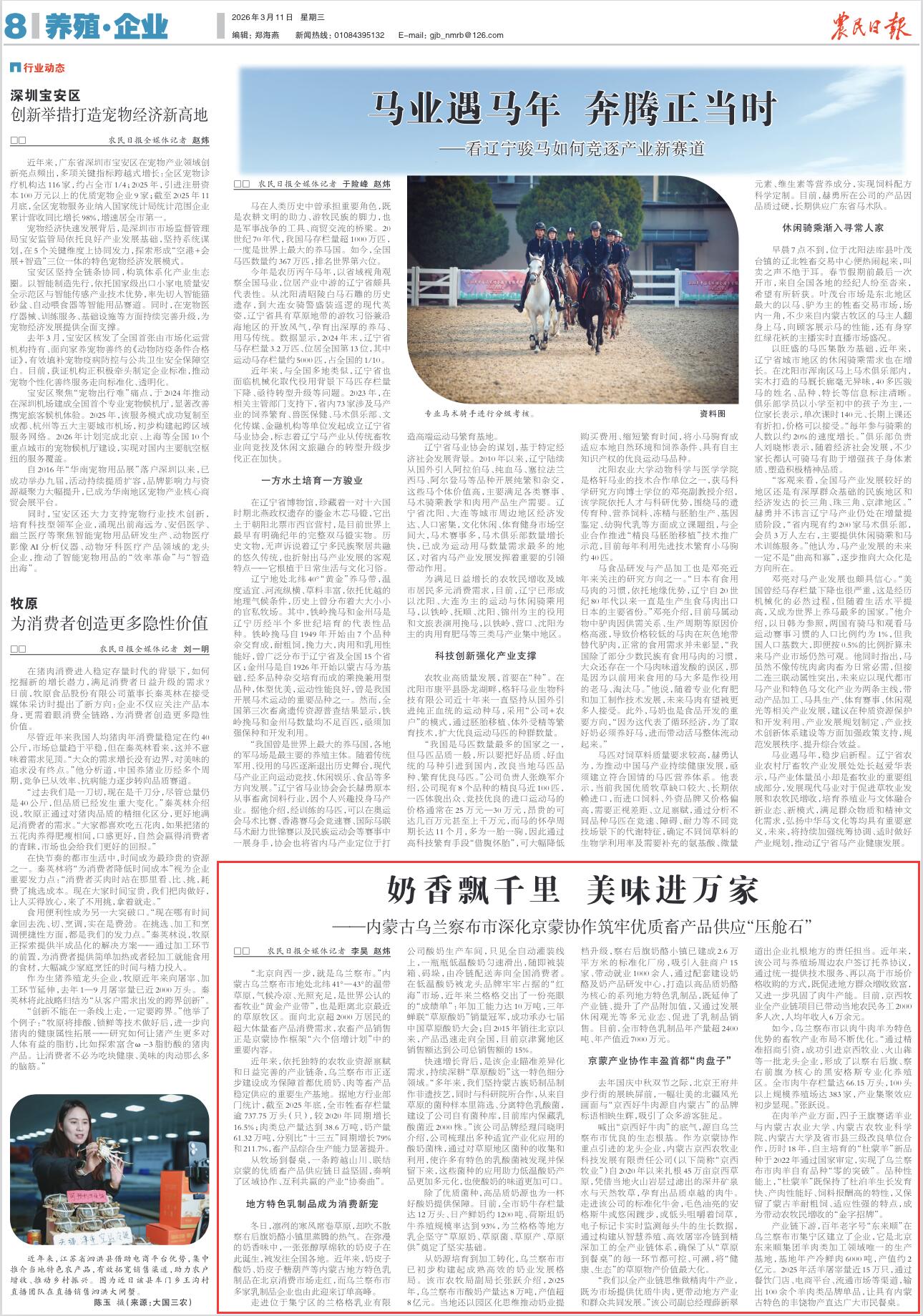 2026年3月11日,《農(nóng)民日?qǐng)?bào)》第8版刊發(fā)題為《奶香飄千里 美味進(jìn)萬(wàn)家——內(nèi)蒙古烏蘭察布市深化京蒙協(xié)作筑牢優(yōu)質(zhì)畜產(chǎn)品供應(yīng)“壓艙石”》的文章,報(bào)道了內(nèi)蒙古烏蘭察布市是世界公認(rèn)的畜牧業(yè)“黃金產(chǎn)業(yè)帶”,也是距離北京最近的草原牧區(qū),面向北京超2000萬(wàn)居民的超大體量畜產(chǎn)品消費(fèi)需求,農(nóng)畜產(chǎn)品銷售正是京蒙協(xié)作框架“六個(gè)倍增計(jì)劃”中的重要內(nèi)容。