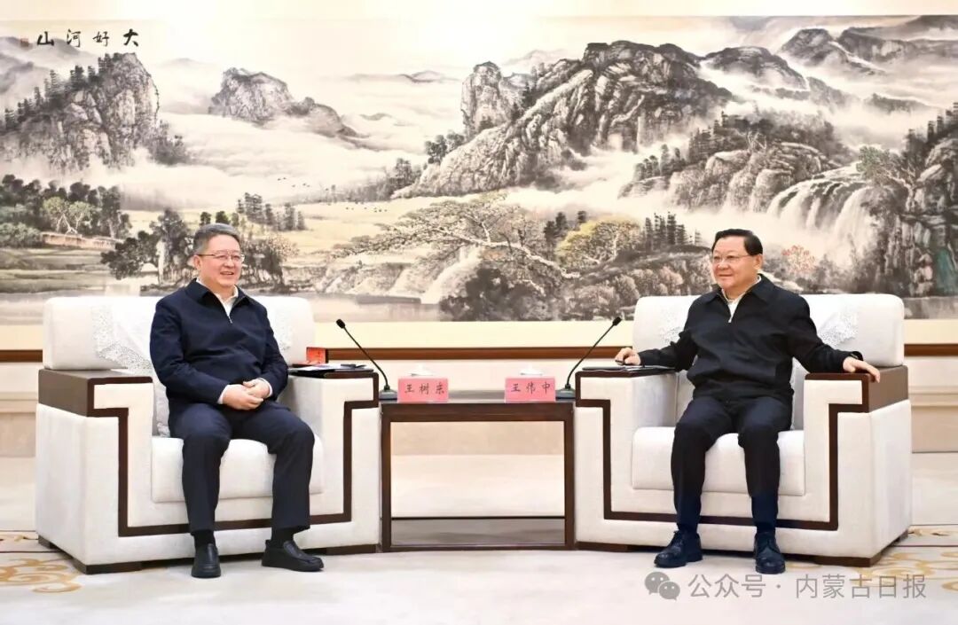 4月8日,自治區(qū)黨委書記、人大常委會主任王偉中,自治區(qū)黨委副書記、自治區(qū)人民政府主席包鋼在呼和浩特會見中國中煤能源集團(tuán)有限公司董事長王樹東、總經(jīng)理高士崗。