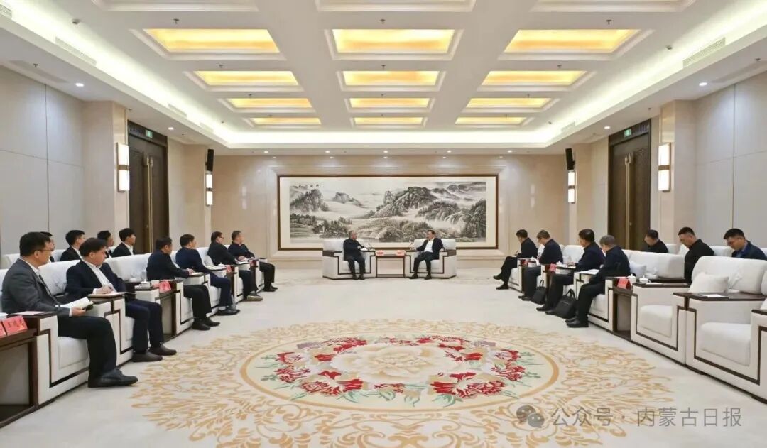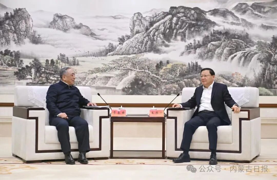 4月16日下午,自治區(qū)黨委書記、人大常委會主任王偉中在呼和浩特會見中國煤炭地質(zhì)總局黨委書記賈春曲。草原云·內(nèi)蒙古新聞網(wǎng)記者 馬建兵 攝