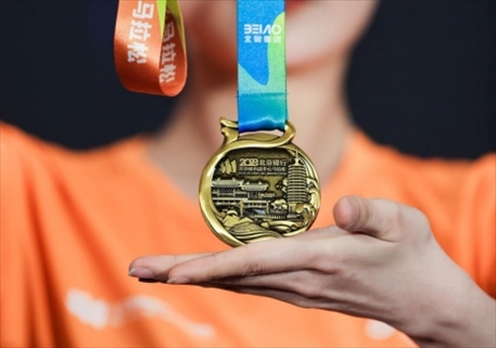 在新聞發(fā)布會上,賽事組委會還發(fā)布了本屆賽事的獎牌和服裝。獎牌名為“運河逐夢”,意為歡迎全國各地的跑友來北京城市副中心運河畔發(fā)展創(chuàng)業(yè)、追逐夢想。賽事服裝主色調(diào)橙色彰顯屬于馬拉松運動的青春活力,寓有馬到“橙”功之意。