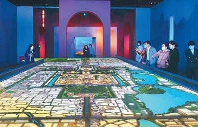 “展覽采用交互沉浸的數(shù)字化設(shè)計理念和豐富多彩的新媒體藝術(shù)手法,為觀眾營造了一個古今相通、虛實(shí)交織的中軸線文化空間?!闭褂[形式設(shè)計、首都博物館陳列部副主任鐘梅說,“多媒體展項不只是形式酷炫,更是為了生動表現(xiàn)中軸線的精神文化內(nèi)涵?!?/P>