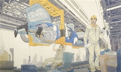 西部生產(chǎn)線(中國畫)李青稞