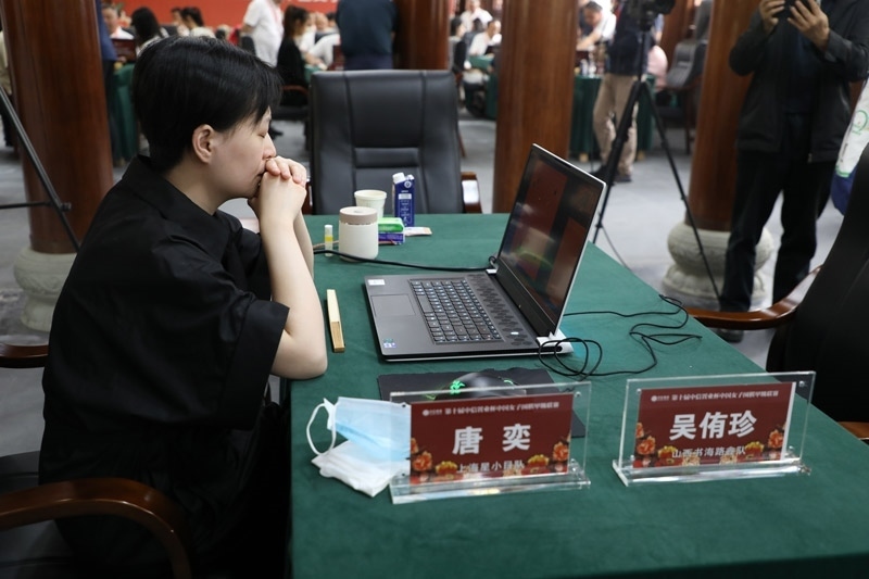 李思璇與仲邑堇線上比賽。人民網(wǎng)記者 李乃妍攝