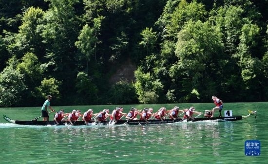 6月25日,在瑞士埃格利紹,瑞士蘇黎世州華僑華人組織的“龍戰(zhàn)隊”參加賽龍舟活動。