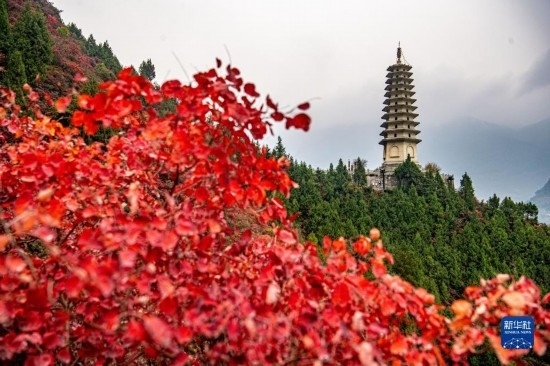 初冬時(shí)節(jié),長江三峽重慶市巫山縣水域兩岸色彩斑斕,紅葉似火,美如畫卷。