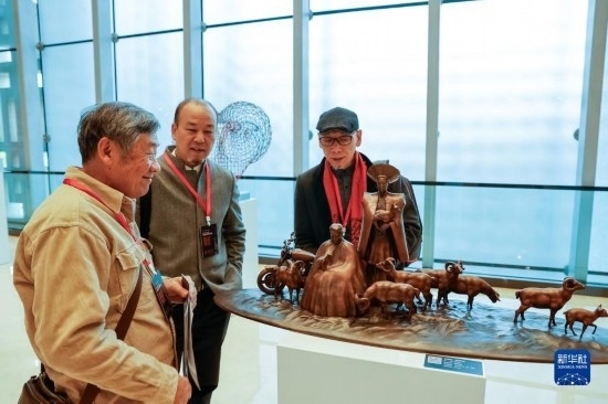 11月30日,人們?cè)谛蕾p首屆天府雕塑展上展出的作品。