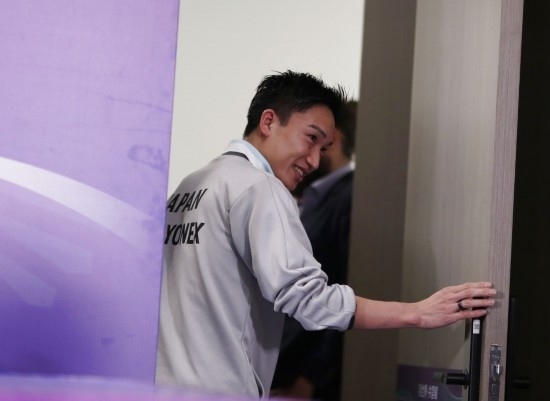 5月3日,桃田賢斗在新聞發(fā)布會(huì)后離場(chǎng)。新華社記者 賈浩成 攝