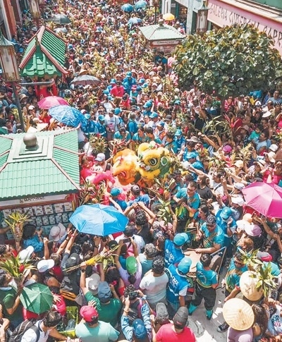 如今,舞龍舞獅已融入秘魯社會。每年中國春節(jié),醒獅團都會在唐人街游行表演,喜慶的鑼鼓振奮人心,龍獅獻瑞帶來歡樂祥和。秘魯民眾走上街頭,手持他們稱為“中國竹子”的轉(zhuǎn)運竹,簇擁在龍獅周圍,爭相看一看、摸一摸,希望沾上喜氣與幸運——這已成為秘魯一大民俗。在秘魯人的婚禮上,舞獅已成為一種時尚。