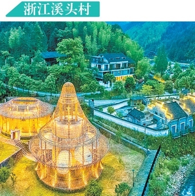 浙江麗水市龍泉市溪頭村,不僅是龍泉青窯燒制技藝傳承地,還是竹建筑文創(chuàng)生活村落。圖為溪頭村竹建筑夜景。竇 皓 張有鋼攝影報道