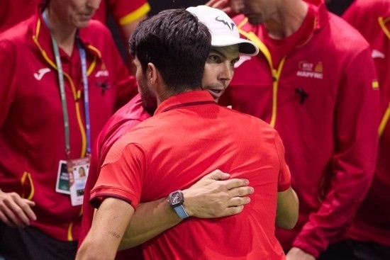 這位傳奇不想就這樣落幕。阿爾卡拉斯贏得第二場單打,為西班牙隊(duì)將總比分扳平。最后一場雙打比賽,場邊觀戰(zhàn)的納達(dá)爾顯得格外激動,不停地站起身叫喊,為隊(duì)友加油鼓勁,眼神一如自己每次站在決賽場上時(shí)那樣堅(jiān)毅。