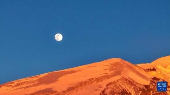 這是在新疆塔什庫(kù)爾干塔吉克自治縣慕士塔格冰川公園拍攝的夕陽(yáng)下的慕士塔格峰(1月12日攝,無(wú)人機(jī)照片)。