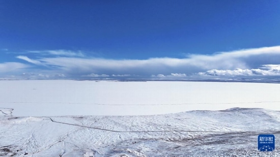 這是2月22日拍攝的雪后的鄂陵湖一角(無人機(jī)照片)。