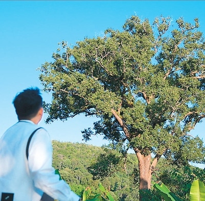 樂(lè)天在古寨游玩。