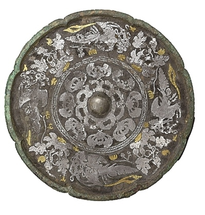 在金銀交相輝映下,這面銅鏡時至今日依然流光溢彩,其奧秘就在于“金銀平脫”工藝。即用金銀薄片裁成紋樣,粘貼于銅器漆面上,周邊再用漆涂滿,經(jīng)研磨拋光再鏨花,形成富麗堂皇、精麗雅致的藝術(shù)效果。它從最早出現(xiàn)于商代的金銀箔貼花技術(shù)演變而來,后經(jīng)歷了戰(zhàn)國、漢代較長時期的發(fā)展。到了唐代,工匠將“金銀平脫”創(chuàng)造性地運(yùn)用在銅鏡之上。