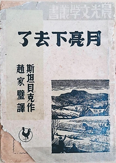 《月亮下去了》也受到中國知識界廣泛關注,該書出版第二年,中國就出現(xiàn)了至少5個譯本。其中包括馬耳翻譯的《月亮下落》、胡仲持翻譯的《月亮下去了》、趙家璧翻譯的《月亮下去了》、劉尊棋翻譯的《月落》、秦戈船翻譯的《月落烏啼霜滿天》,后三者此后又再版,影響較大。