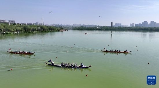 當(dāng)日,2025年“民族團(tuán)結(jié)杯”寧夏端午龍舟邀請(qǐng)賽在銀川市海寶公園舉行。來自寧夏全區(qū)的19支代表隊(duì)參加比賽,用龍舟賽的方式共度端午假期。