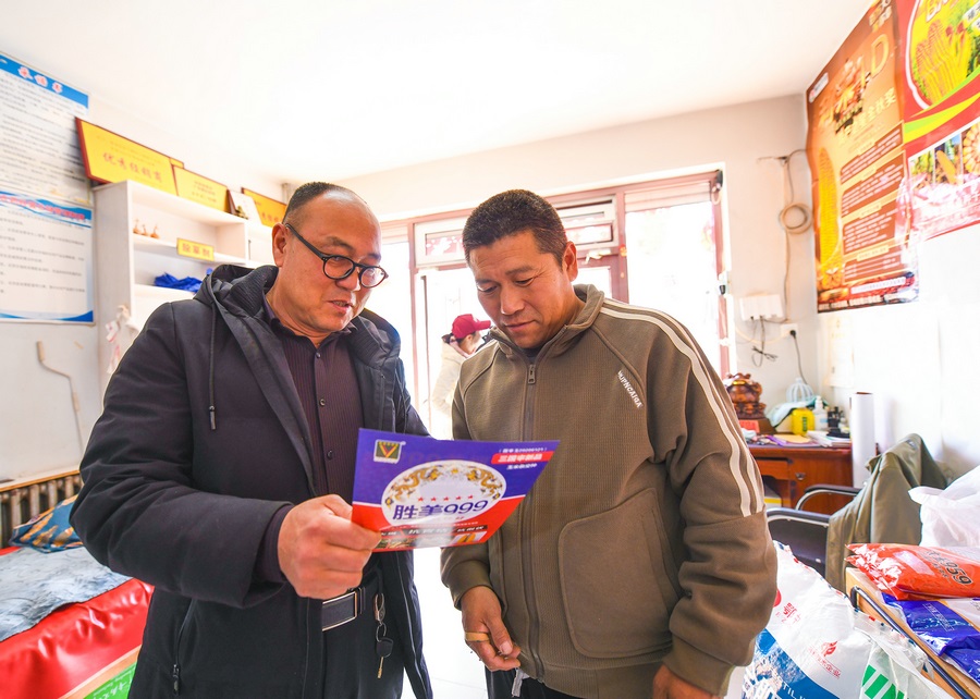 農(nóng)資經(jīng)銷商向種植大戶介紹種子品種。(攝影:楊鑫)