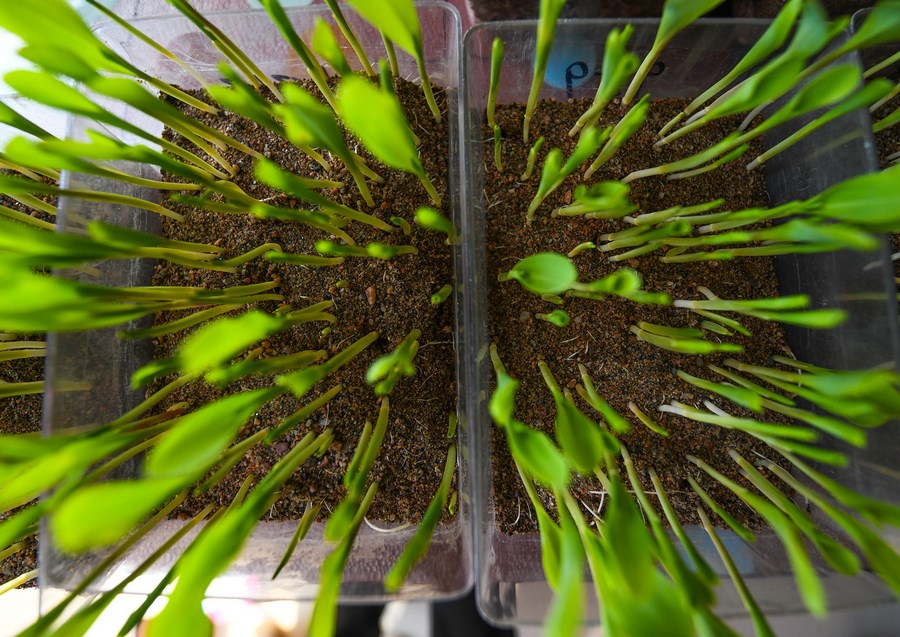 為了保障種子出芽率,土默特左旗相關(guān)部門要求農(nóng)資經(jīng)銷商將所銷售種子提前培育,在保障出芽率的基礎(chǔ)上切實(shí)讓農(nóng)民能夠買到放心種子。圖為提前培育出芽的種苗。(攝影:楊鑫)