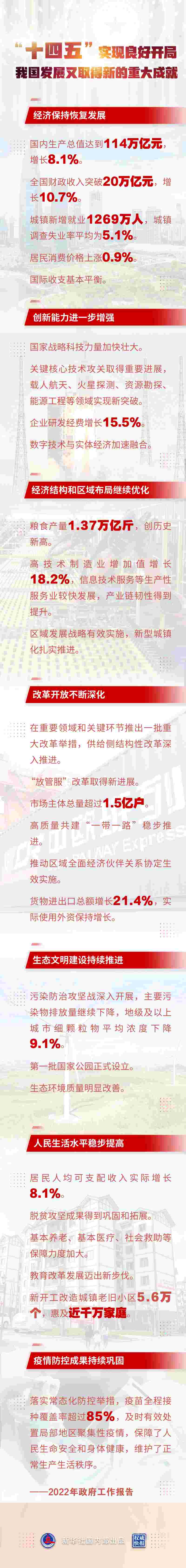 國務(wù)院總理李克強(qiáng)5日在政府工作報(bào)告中指出,過去一年是黨和國家歷史上具有里程碑意義的一年。以習(xí)近平同志為核心的黨中央團(tuán)結(jié)帶領(lǐng)全黨全國各族人民,隆重慶祝中國共產(chǎn)黨成立一百周年,勝利召開黨的十九屆六中全會(huì)、制定黨的第三個(gè)歷史決議,如期打贏脫貧攻堅(jiān)戰(zhàn),如期全面建成小康社會(huì)、實(shí)現(xiàn)第一個(gè)百年奮斗目標(biāo),開啟全面建設(shè)社會(huì)主義現(xiàn)代化國家、向第二個(gè)百年奮斗目標(biāo)進(jìn)軍新征程。一年來,面對(duì)復(fù)雜嚴(yán)峻的國內(nèi)外形勢(shì)和諸多風(fēng)險(xiǎn)挑戰(zhàn),全國上下共同努力,統(tǒng)籌疫情防控和經(jīng)濟(jì)社會(huì)發(fā)展,全年主要目標(biāo)任務(wù)較好完成,“十四五”實(shí)現(xiàn)良好開局,我國發(fā)展又取得新的重大成就。
