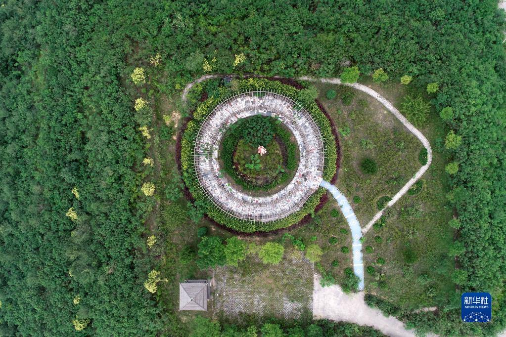 在山西省靈石縣兩渡鎮(zhèn),山西焦煤汾西礦業(yè)兩渡煤業(yè)公司在矸石山上建起來的公園(2018年9月4日攝,無人機(jī)照片)。新華社記者 詹彥 攝
