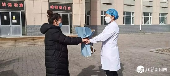 下午3點,患者王某走出隔離病房,醫(yī)務(wù)人員將鮮花送到她手中,并和她合影留念,她的精神狀態(tài)看上去不錯。