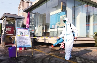 “您好,這是小區(qū)住戶購買的食品,可以幫忙送進去嗎?”“沒問題,我們對包裹消殺后給您送進去。”在小區(qū)門口,城管的工作人員將經(jīng)過消殺的包裹送到了警戒線內(nèi),再由物業(yè)保安送到小區(qū)內(nèi)部?!澳壳靶^(qū)處于封閉狀態(tài),我們在小區(qū)門口設置了三道防線,門口警戒線、消殺區(qū)域及居民取物資警戒線,所有進出入小區(qū)的人員物品都要進行防疫消殺。同時我們也按照疫情防控指揮部的統(tǒng)一要求,對小區(qū)內(nèi)部每天定時進行消殺和垃圾清運工作?!睒蛉A世紀村·紫華園小區(qū)富華物業(yè)的保安隊長趙文忠向記者介紹。