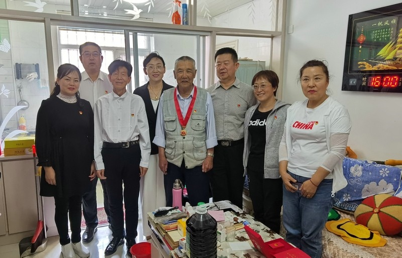 當(dāng)天下午,各黨組織代表共同來到阿左旗額魯特街道黨工委所屬社區(qū),入戶慰問了3名老黨員與1名貧困戶,為他們送去了生活物資,還為90歲高齡老黨員常根禎及86歲老黨員張世云佩戴了“光榮在黨五十年”榮譽(yù)勛章。幾位老黨員非常感動(dòng),給大家講起了自己當(dāng)年的故事。
