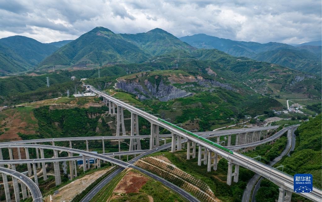 復興號列車通過中老鐵路元江特大橋(6月1日攝)。新華社記者 江文耀 攝